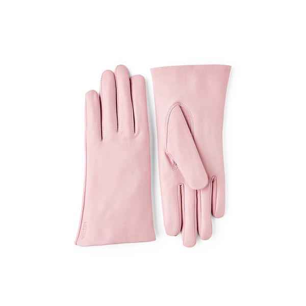 Stilren och elegant damhandske med sidenfoder. Sydd i finaste italiensk lammnappa, ett fantastiskt följsamt läder med hög glans. Passformen är handnära med halvpiqué-söm längs fingrarna. Sidenfodret värmer lätt med mjuk, lyxig känsla. En tidlös modeaccessoar för en sofistikerad vår- och höstlook.