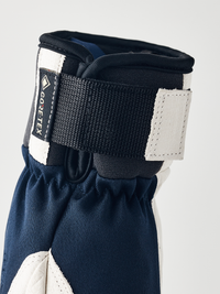 Kort 5-fingers handske med GORE-TEX-membran som gör den vattentät och välventilerad. Sydd i slitstarkt getskinn med ovansida i tålig och stretchig softshellväv. En neoprenmudd...