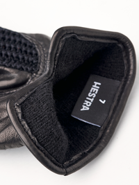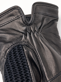 Elegant skinnhandske med bomullscrochet på handens ovansida. Sydd i exklusiv italiensk lammnappa, ett mjukt och följsamt läder med hög glans. Ett tunt stickat foder i ull gör ...