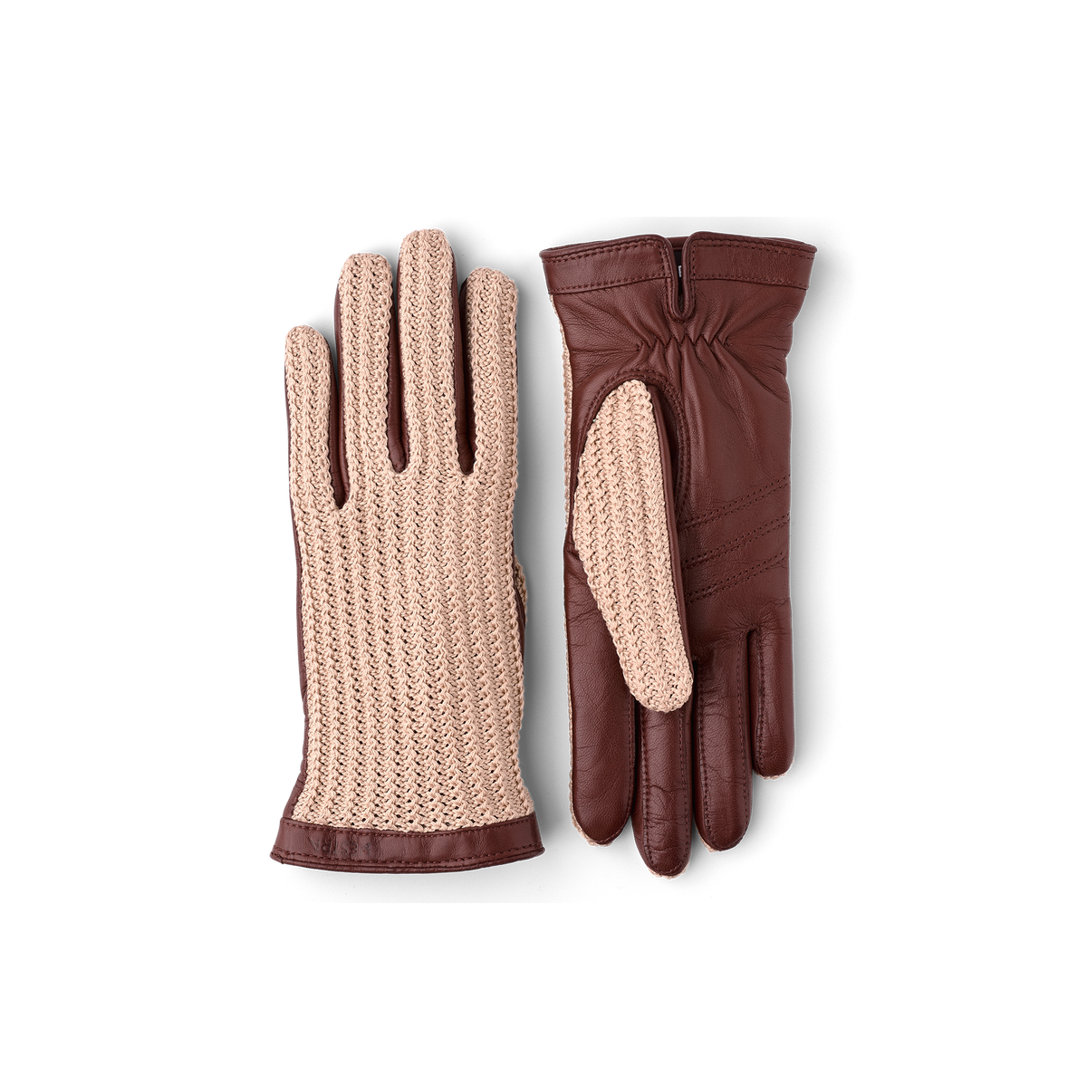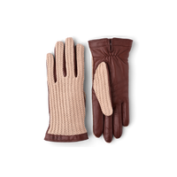 Elegant skinnhandske med bomullscrochet på handens ovansida. Sydd i exklusiv italiensk lammnappa, ett mjukt och följsamt läder med hög glans. Ett tunt stickat foder i ull gör ...