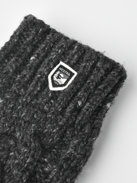 Mjuk och skön tumvante med dekorativ flätstickning på handens ovansida. Stickad i ett härligt melerat garn av merinoull som blandats med alpacka och återvunnen polyamid för bä...