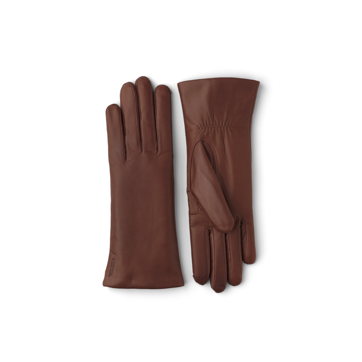 Stilren skinnhandske med mjukt stickat ullfoder. Sydd i exklusiv italiensk lammnappa, ett mjukt och följsamt material med hög glans. Perfekt värmande under vår, höst och inte ...