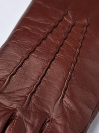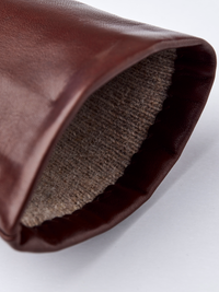Elegant och tidlös handske med mjukt stickat ullfoder. Sydd i följsam italiensk lammnappa med handsydd denta på handens ovansida. Passformen är feminin och handnära med halvpi...