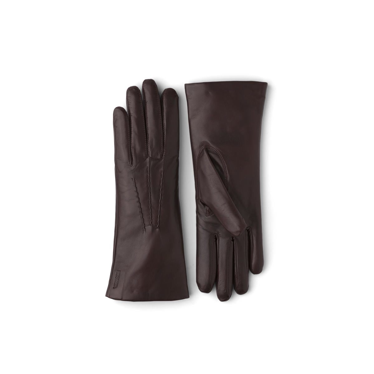 Elegant och tidlös handske med mjukt stickat ullfoder. Sydd i följsam italiensk lammnappa med handsydd denta på handens ovansida. Passformen är feminin och handnära med halvpi...