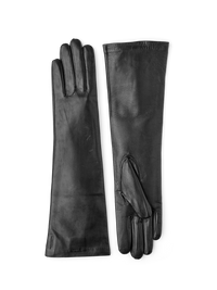 Armbågslång, elegant damhandske sydd i högkvalitativ lammnappa från Italien. Utformningen är minimalistisk med handnära passform och halvpiqué-sömmar längs fingrarna. Ett side...