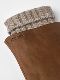 Stilren skinnhandske med mjukt stickat foder i ull. Sydd i exklusiv italiensk lammnappa, ett mjukt och följsamt skinn med fin lyster. Skönt värmande under vår och höst och pas...