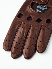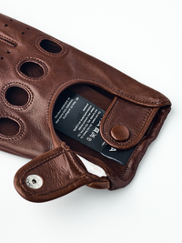Tunn handske i exklusiv italiensk lammnappa med fin lyster. En klassisk så kallad ”bilhandske” med 60-talsinspirerad look. Material och hantverk håller högsta klass, med halvp...