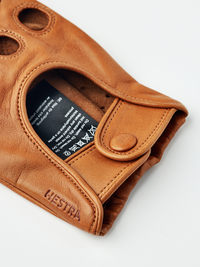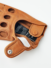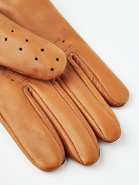 Tunn handske i exklusiv italiensk lammnappa med fin lyster. En klassisk så kallad ”bilhandske” med 60-talsinspirerad look. Material och hantverk håller högsta klass, med halvp...