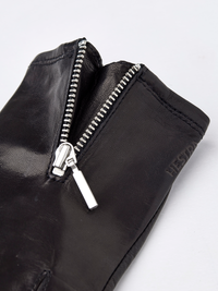 Kort, stilren damhandske i skinn med dekorativ dragkedja i metall på ovansidan. Sydd i följsam italiensk lammnappa med handnära passform. Ett lätt sidenfoder gör den perfekt f...